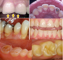 - □前歯の先端部分が透けており、ヒビが入ったり、欠けたりする